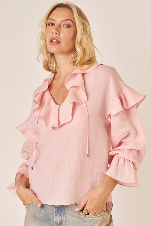 A blusa sem manga Sula é confeccionada em tecido leve e fluido, com design moderno e elegante. O modelo apresenta decote em V e fechamento frontal com delicados botões, trazendo um toque de sofisticação. A peça conta com uma faixa removível na gola, que pode ser usada como laço ou amarração, permitindo versatilidade no estilo.