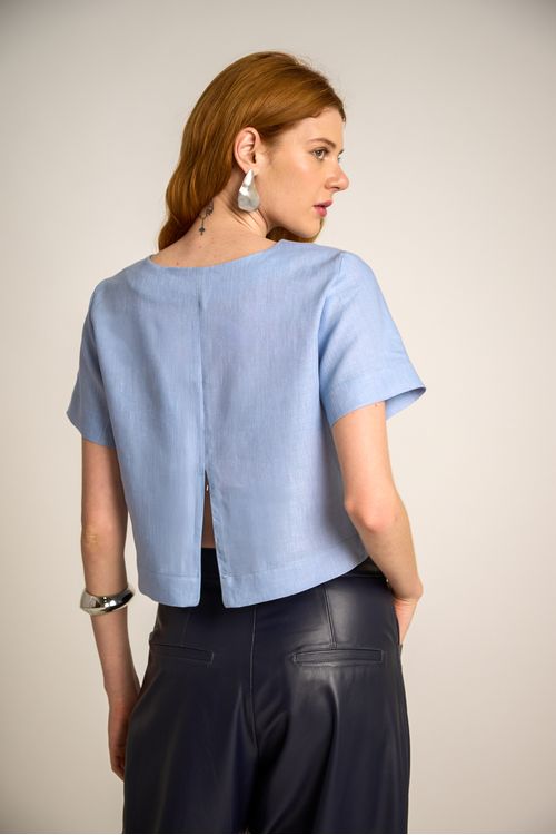 BLUSA ALFAIATARIA Isabel confeccionada em tweed leve. A peça tem o shape modelado ao corpo com comprimento cropped padrão, mangas curtas acima do cotovelo, possui decote careca e abertura acima do busto como detalhe, o fechamento é pelas costas com zíper de metal destacável.