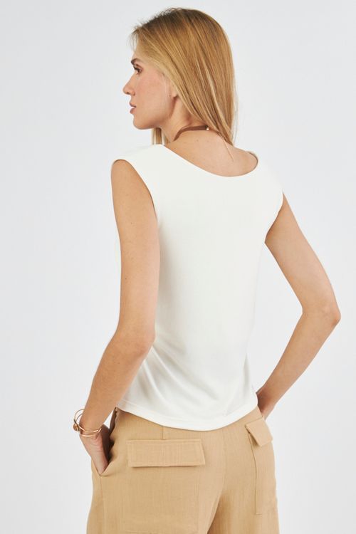 Twenty four Seven. A modelagem é solta do corpo, possui decote "V" com