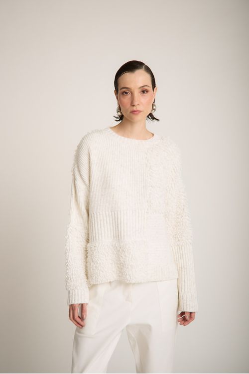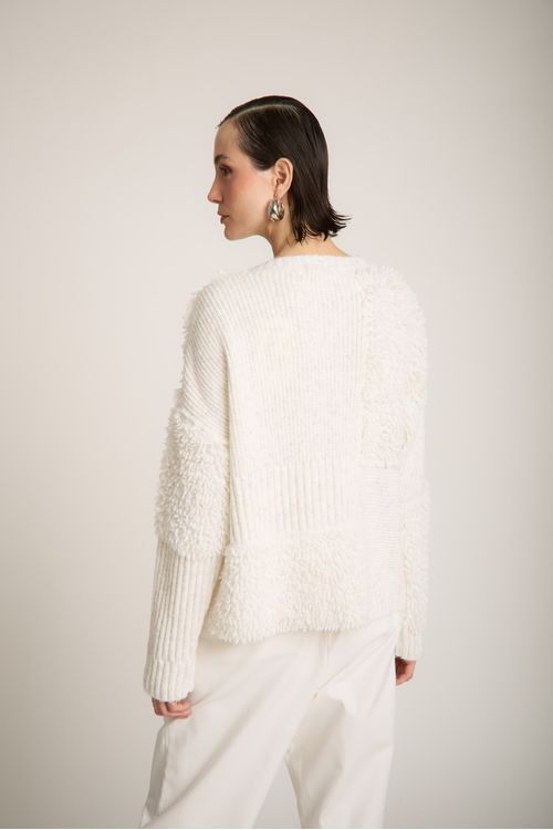CASACO TRICOT ABERTO MANGA BUFANTE FIO CHENILE SOPHIA