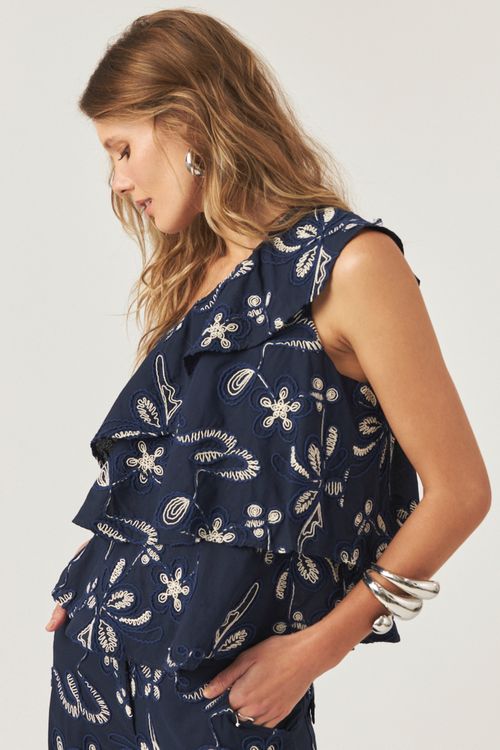 A regata Paloma é confeccionada em tecido leve e texturizado, que confere fluidez e movimento refinado. Sua modelagem fluída garante conforto e um toque moderno, enquanto o decote V todo bordado com micro pérolas com as alças finas valorizam o colo com feminilidade discreta. Com acabamento delicado e estrutura leve, a peça expressa o equilíbrio entre elegância e simplicidade, assinatura da linha Alfaiataria. Ideal para compor looks sofisticados em conjunto com a calça da mesma família ou para combinações minimalistas e contemporâneas.