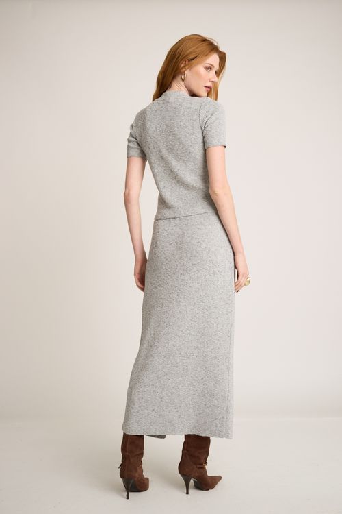Desenvolvido em malha canelada, esse vestido possui comprimento longo com fenda do lado esquerdo de quem veste, mangas longas e shape mais justo ao corpo. Seu decote é quadrado que dão um toque mais especial ao modelo.